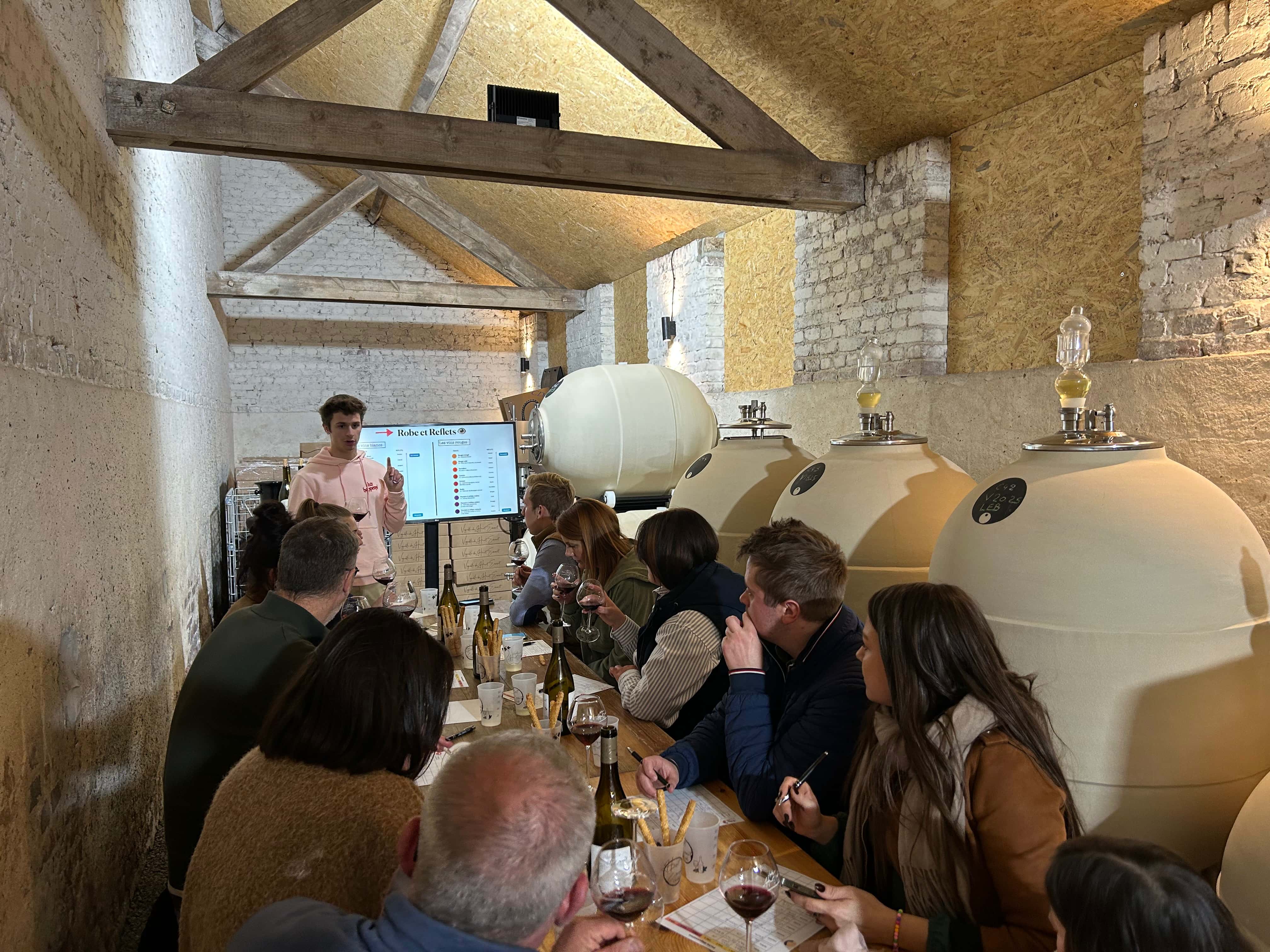 Selon les saisons, les soirées prennent vie au cœur de la cave d’élevage, entre les barriques, ou directement dans les vignes, baignées par la lumière dorée du soir.